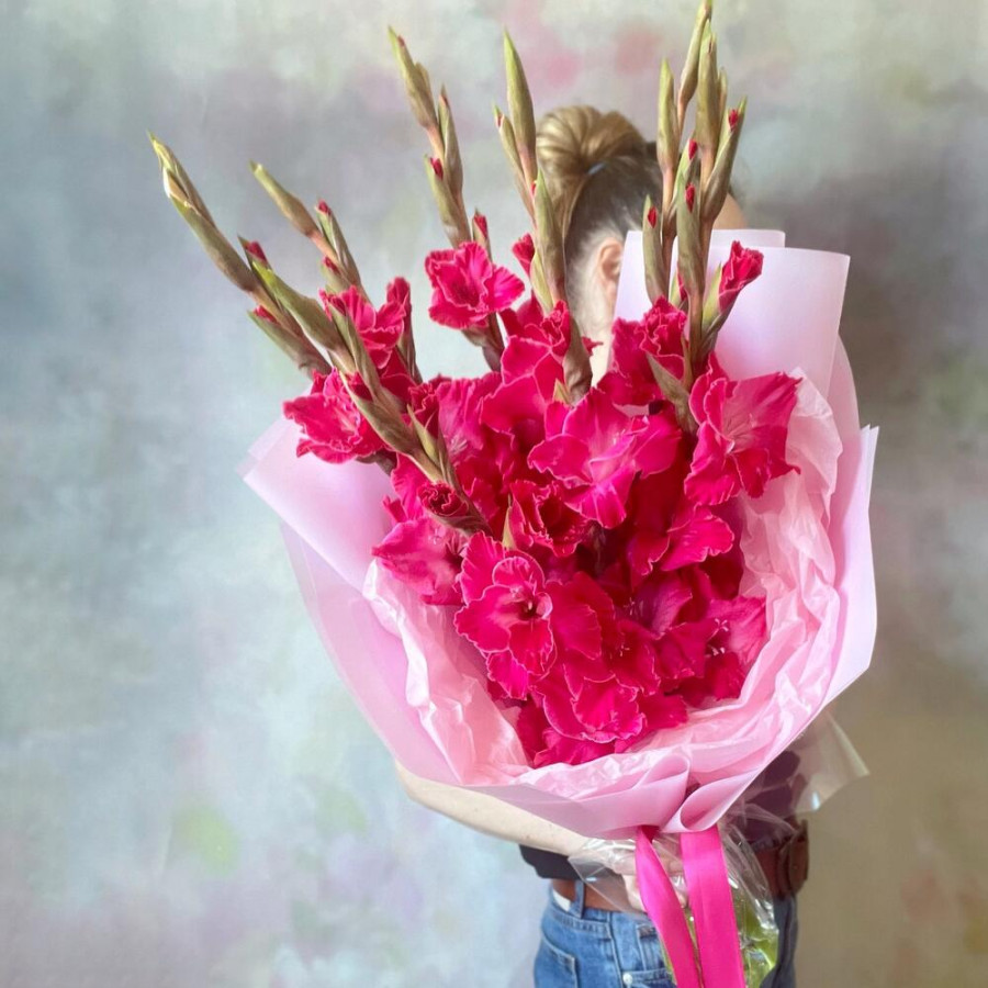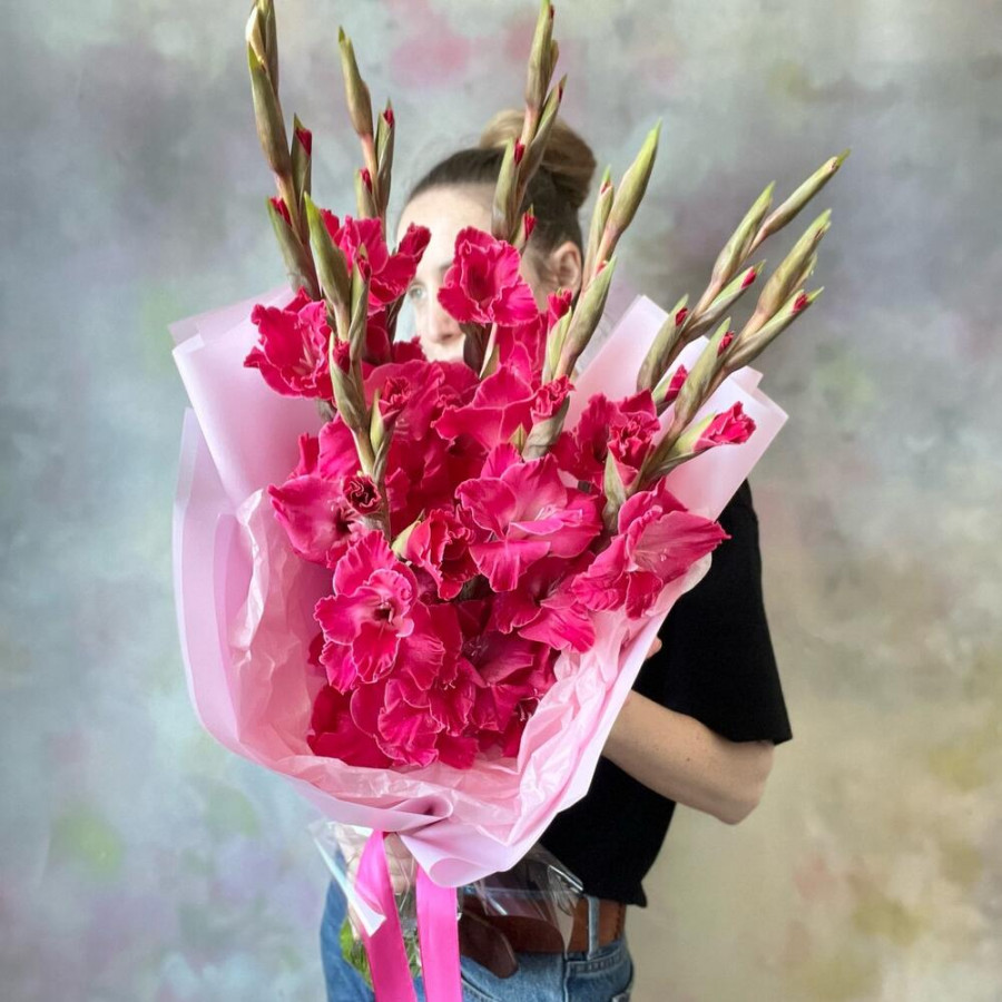 Букет из 9 розовых гладиолусов