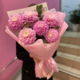 На фото букет из 7 розовых георгин. В составе: георгина 7 шт, эвкалипт 3 шт, дизайнерская упаковка 1 шт, атласная лента 1 шт, . Все цветы свежие и ароматные, букет красиво оформлен и отлично подходит для подарка. Доступна доставка цветов или самовывоз.
