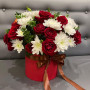 Удивите свою возлюбленную неповторимой композицией из белых хризантем и красных роз в шляпной коробке. Этот роскошный и элегантный подарок переполнен страстью и романтикой. Белые хризантемы символизируют чистоту и нежность, тогда как красные розы воплощают любовь и страсть. Эта уникальная комбинация создаст атмосферу прекрасных эмоций и нежных моментов. Разделите свои чувства и ощущения с помощью этого потрясающего подарка. Закажите белые хризантемы и красные розы в шляпной коробке сегодня и сделайте день особенным.