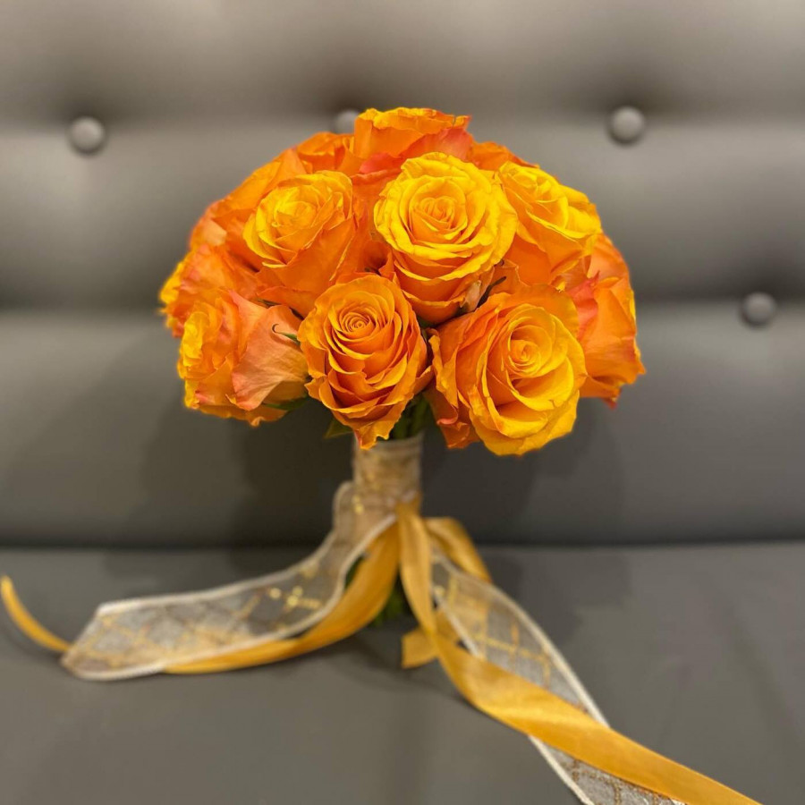 На фото букет невесты из желтых роз. В составе: роза 11 шт, атласная лента 1 шт, . Все цветы свежие и ароматные, букет красиво оформлен и отлично подходит для подарка. Доступна доставка цветов или самовывоз.