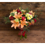 Пять восхитительных роз, три яркие, но нежные лилии, веточки очаровательной хризантемы, оригинальные соцветия альстромерии, насыщенно зеленые листья папоротника и декоративные яблоки – это невероятная композиция предназначена для самых взыскательных натур, которые знаю цену настоящей изысканности, элегантности и роскоши. Необычная упаковка подчеркивает неординарность букета и Ваш безупречный вкус.
