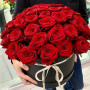 На фото розы в черной коробке. В составе: роза 37 шт, шляпная коробка (m) 1 шт, атласная лента 1 шт, . Все цветы свежие и ароматные, букет красиво оформлен и отлично подходит для подарка. Доступна доставка цветов или самовывоз.